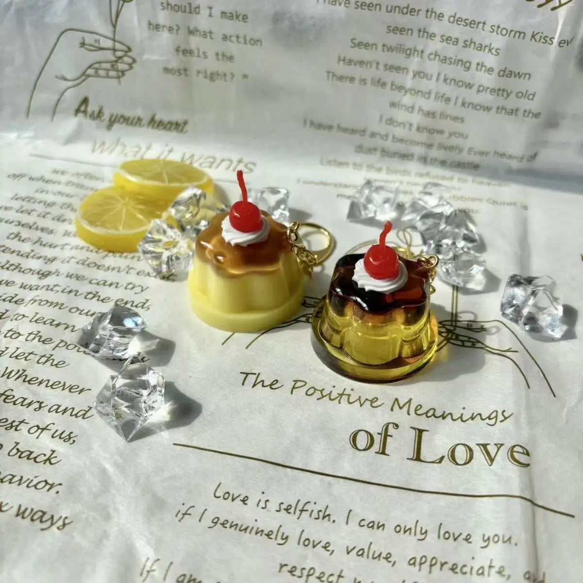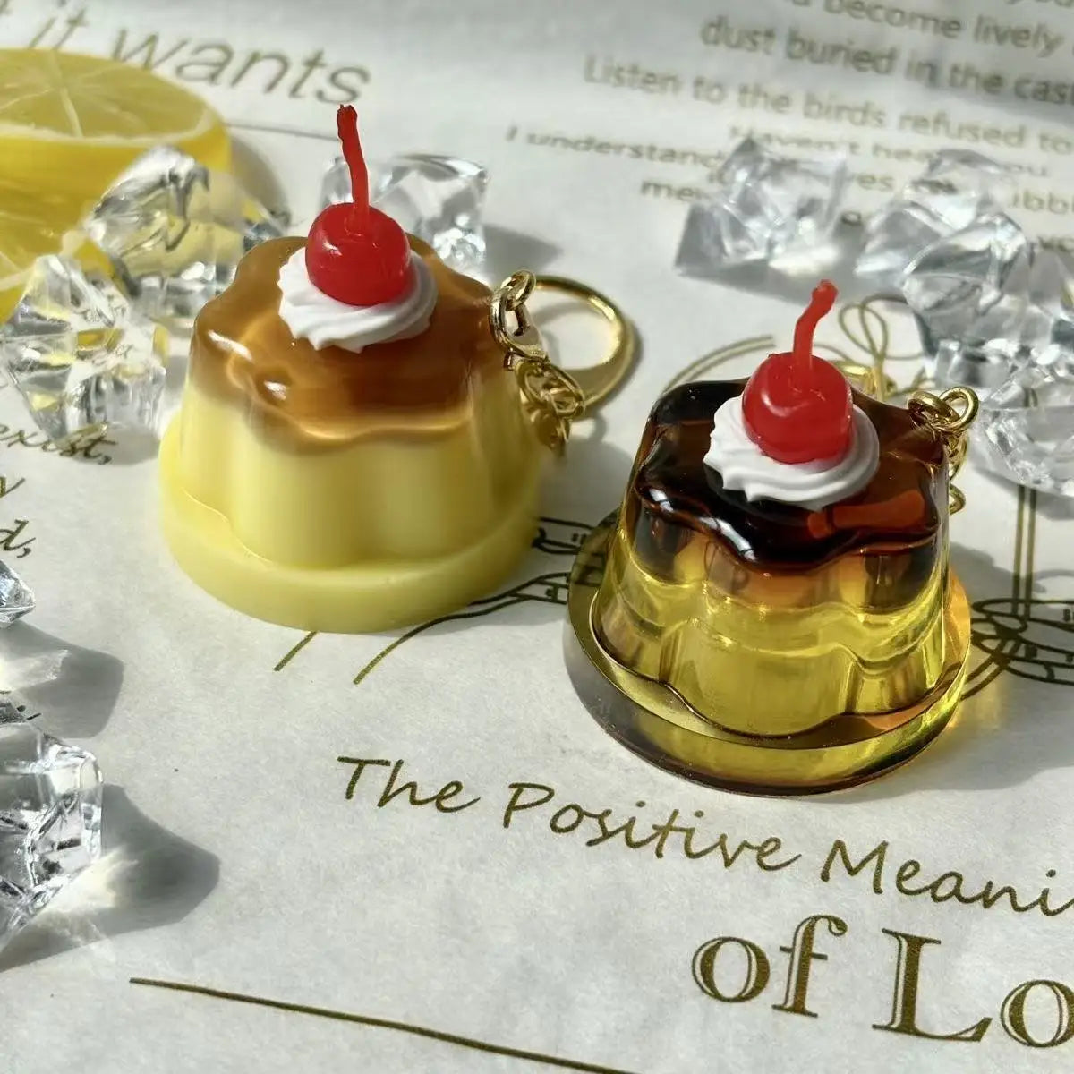 Cherry Pudding Keychain | Cute Caramel Cold Drink Snack Pendant Bag Accessory